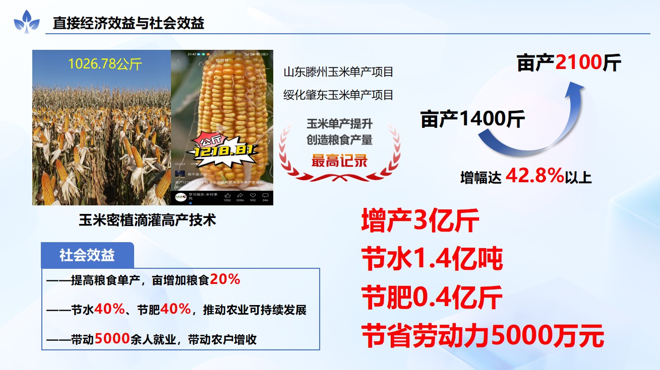 这份 “精准” 最终转化为实实在在的农业成效:在山东省滕州市玉米单产提升项目中,应用我们的系统后,玉米亩产从约 1400 斤提升至 2000 斤,增幅超42.8% ,同时实现节水 40%、节肥 40%,既提升了粮食产量,又减少了农业面源污染,完美契合绿色农业发展需求。